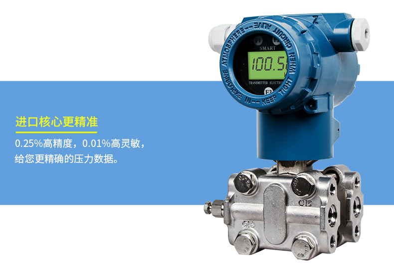 SIN-3051系列壓力變送器利用差動電容檢測的原理,當膜片兩側壓力不一致時,使容室中測量膜片產生位移,其位移量與壓力差成正比