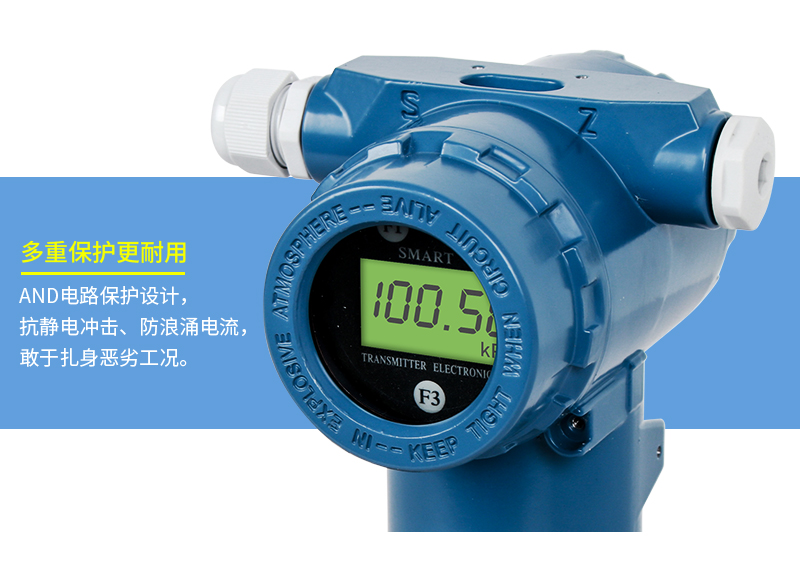 SIN-3051系列壓力變送器利用差動電容檢測的原理,當膜片兩側壓力不一致時,使容室中測量膜片產生位移,其位移量與壓力差成正比,通過電路處理將電容變化量轉換成4~20mA的二線制電流或電壓信號,可帶上458協議或者HART通訊協議功能。該變送器具有堅固抗振,量程,零點和阻尼現場連續可調。