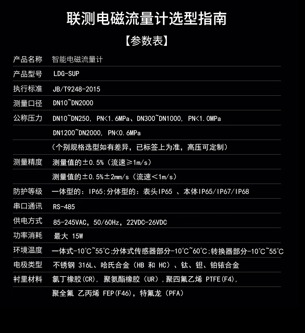 LDG-SINF系列智能電磁流量計(jì)適用于化工助劑、海綿城市、給水排水、水利灌溉、水處理、污水處理(環(huán)保污水控制、化工污水、電鍍污水)、造紙漿液(紙漿)、泥漿、醫(yī)藥原料、食品等工農(nóng)業(yè)