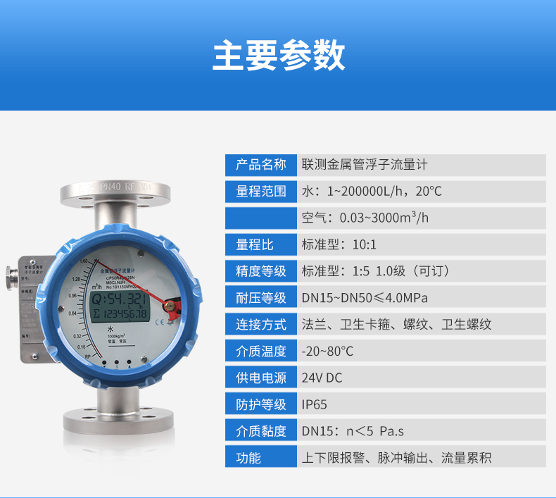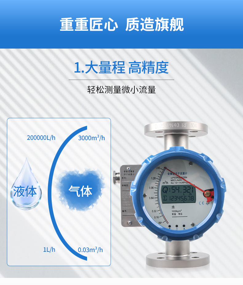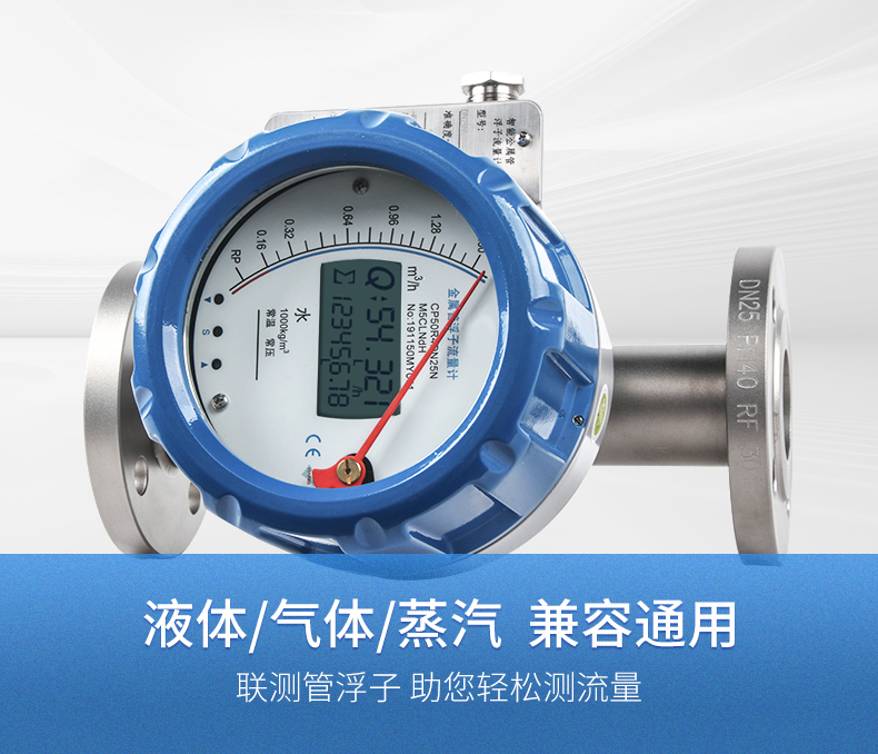金屬管浮子流量計(又稱金屬轉子流量計)具有結構簡單、工作可靠、適用范圍廣、精度較高、安裝方便等特點。該系列流量計與玻璃轉子流量計比較,具有耐高壓、高溫、安全感強、讀數簡明等特點。并可適用于不透明介質和腐蝕性介質的流量測量。金屬管浮子流量計為變面積式流量計,即在流量計的垂直測量管中,當流體向上流經管子時。浮子向上移動,在某一位置浮子所受升力與浮子重力達到平衡,此時浮子與孔板(或錐管)間的流通環隙面積保持一定。環隙面積與浮子的上升高度成比例,即浮子的某一高度代表流量的大小。