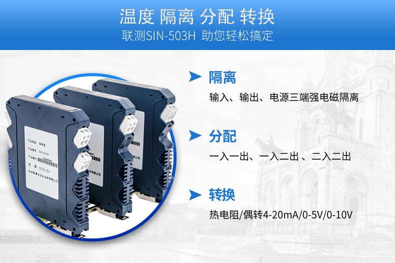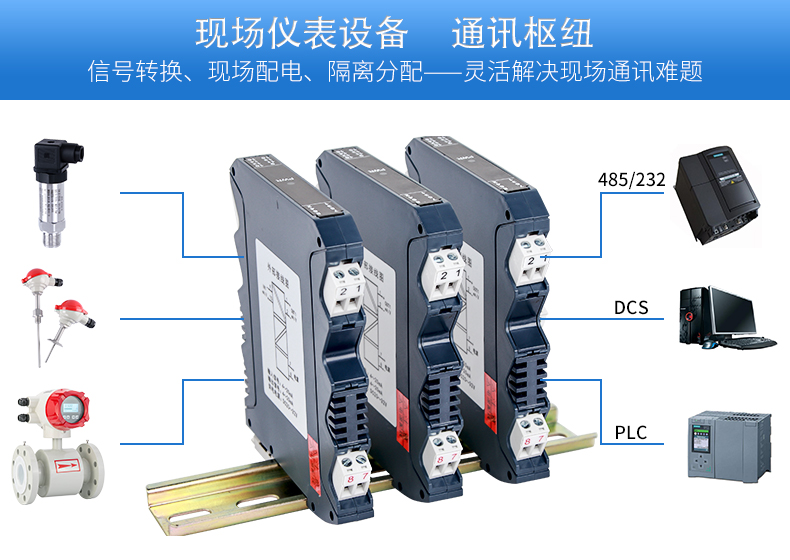 將PT100等熱電阻跟熱電偶信號轉(zhuǎn)換成各種電流、電壓等標準模擬量信號,可以與PC機、PLC、DCS等實現(xiàn)工控監(jiān)測連接。抗干擾能力強,遠傳不受其他設(shè)備影響。輸入、輸出選擇范圍寬,準確度高。電源可選擇,導(dǎo)軌安裝便于檢測與安裝。廣泛應(yīng)用于各種對溫度集中測量的監(jiān)控系統(tǒng)中。
