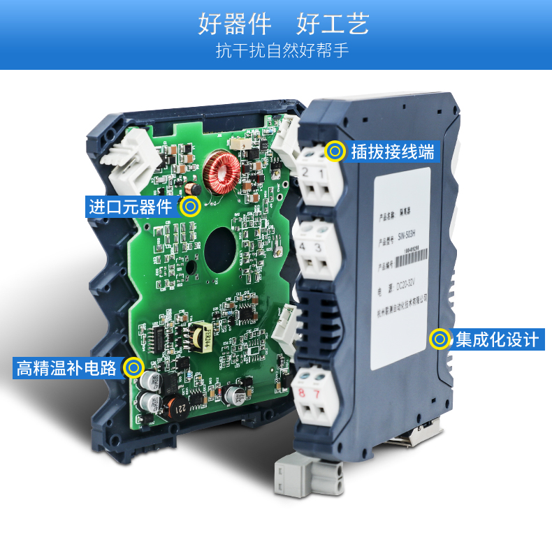 將PT100等熱電阻跟熱電偶信號轉(zhuǎn)換成各種電流、電壓等標準模擬量信號,可以與PC機、PLC、DCS等實現(xiàn)工控監(jiān)測連接。抗干擾能力強,遠傳不受其他設(shè)備影響。