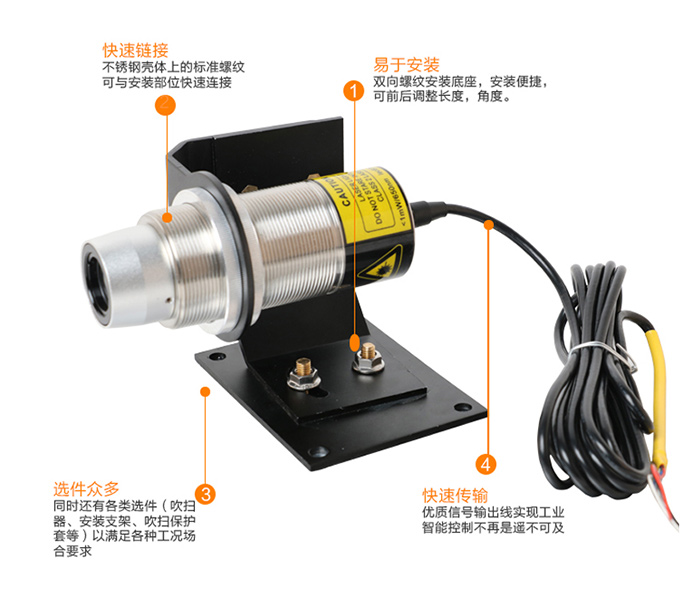 聯測SIN-AS-10工業在線式短波紅外測溫儀可以方便地測量難以接近或移動的目標,廣泛應用于玻璃陶瓷、造紙、窯爐等需要檢測儀器溫度的行業領域,從而保證儀器的正常運行。