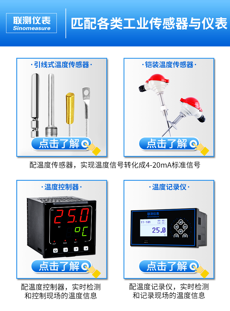 石油、化工、化纖;紡織、橡膠、建材;電力、冶金、醫藥;食品等工業領域現場測溫過程控制;特別適用于計算機測控系統,也可與儀表配套使用。