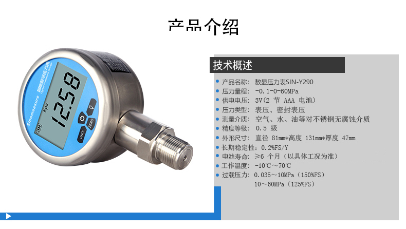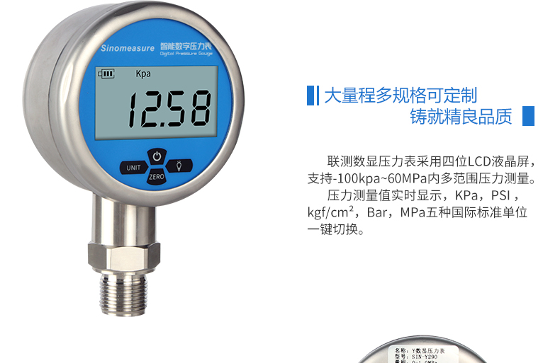 聯(lián)測數(shù)顯壓力表Y290,內置高精度壓力傳感器,能夠 準確的實時顯示壓力,并且具有精度高,長期穩(wěn)定性好 的特點。