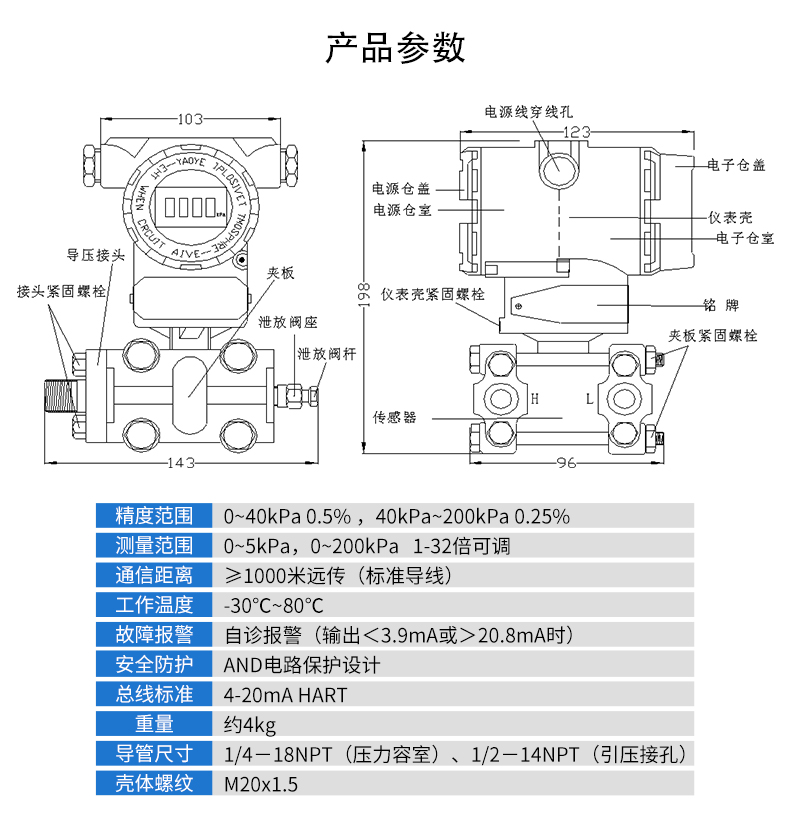 SIN-3051系列壓力變送器利用差動(dòng)電容檢測(cè)的原理,當(dāng)膜片兩側(cè)壓力不一致時(shí),使容室中測(cè)量膜片產(chǎn)生位移,其位移量與壓力差成正比,通過(guò)電路處理將電容變化量轉(zhuǎn)換成4~20mA的二線制電流或電壓信號(hào),可帶上458協(xié)議或者HART通訊協(xié)議功能。該變送器具有堅(jiān)固抗振,量程,零點(diǎn)和阻尼現(xiàn)場(chǎng)連續(xù)可調(diào)。