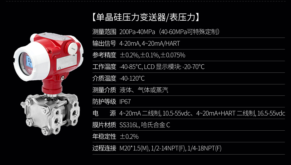 SIN-P3000G單晶硅壓力變送器用于測量液體、氣體或蒸汽的液位、密度、壓力,然后將其轉(zhuǎn)變成4-20mAHART電流信號輸出,也可與HART375或BST Modem相互通信,通過他們進(jìn)行參數(shù)設(shè)定、過程控制。與傳統(tǒng)壓力變送器的區(qū)別在于它使用的是納米單晶硅作為傳感器材料。