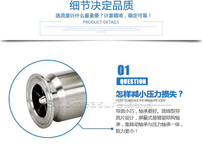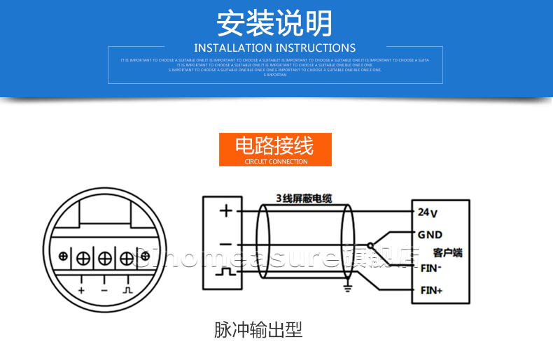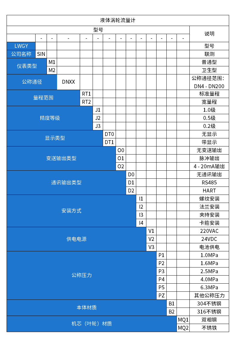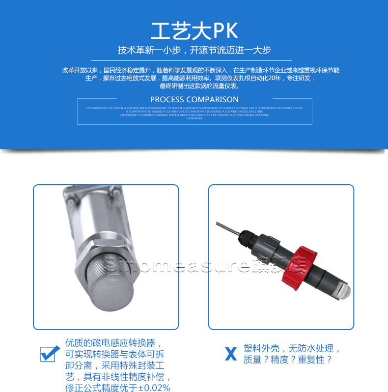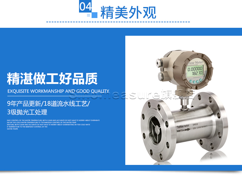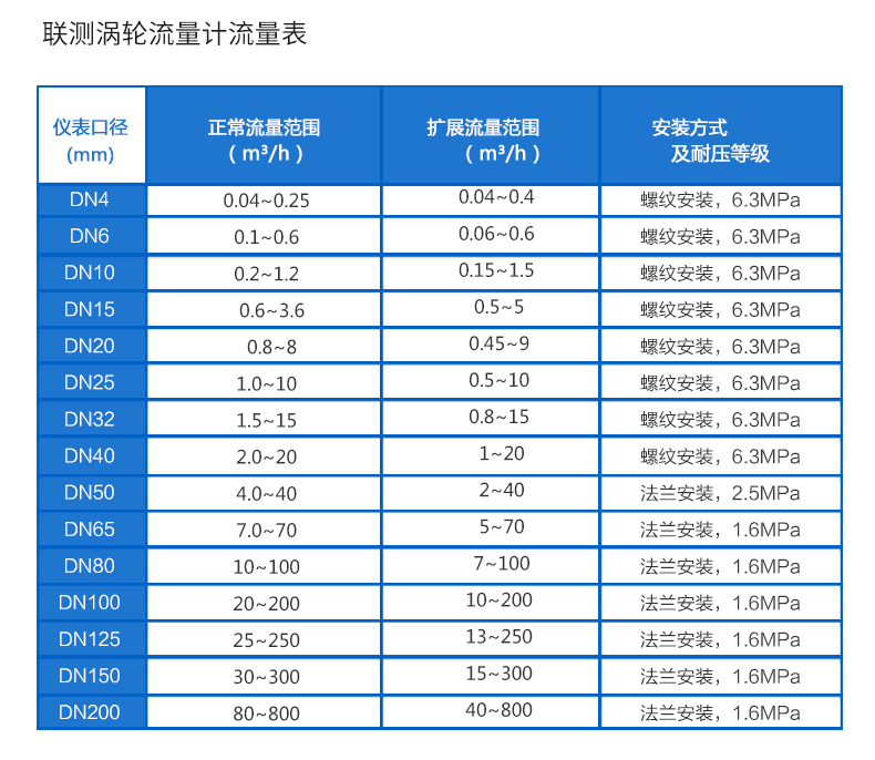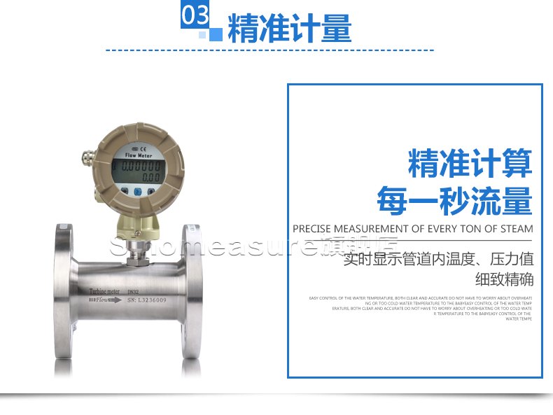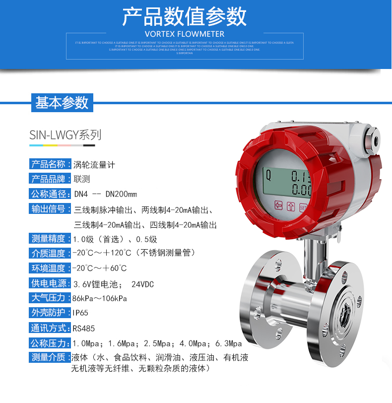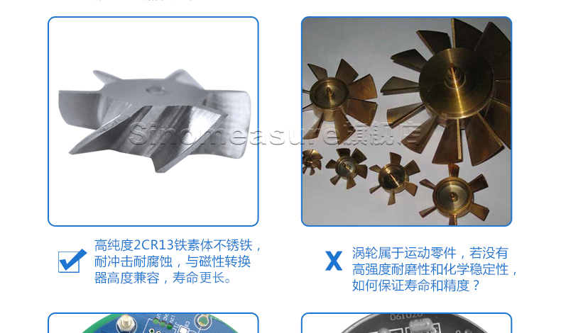 流體流經傳感器殼體,由于葉輪的葉片與流向有一定的角度,流體的沖力使葉片具有轉動力矩,克服摩擦力矩和流體阻力之后葉片旋轉,在力矩平衡后轉速穩定,在一定的條件下,轉速與流速成正比,由于葉片有導磁性,它處于信號檢測器(由永久磁鋼和線圈組成)的磁場中,旋轉的葉片切割磁力線,周期性的改變著線圈的磁通量,從而使線圈兩端感應出電脈沖信號,此信號經過放大器的放大整形,形成有一定幅度的連續的矩形脈沖波,可遠傳至顯示儀表,顯示出流體的瞬時流量或總量。
