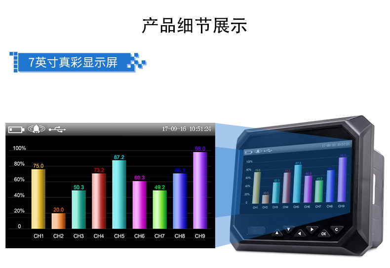 無紙記錄儀是將采集的數(shù)據(jù)/運算數(shù)據(jù)以時間為基軸記錄在儀器內(nèi)部的存儲系統(tǒng)中,無消耗任何常用的記錄設(shè)施,如:紙張、筆墨。記錄在儀器內(nèi)部的存儲數(shù)據(jù),通過運算、模擬后顯示在液晶屏。常用顯示用液晶屏比較廣泛。在液晶屏屏幕上,可以顯示數(shù)字顯示、棒圖顯示、曲線顯示、報警列表等。無紙記錄儀采集的數(shù)據(jù),常用的有:溫度、壓力、流量、液位、電壓、電流、濕度、頻率、振動、轉(zhuǎn)速等。