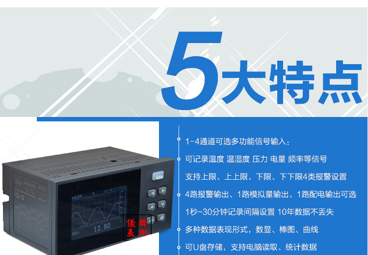 SIN-R200D系列無紙記錄儀可自由組態輸入標準電流、標準電壓、熱電偶、熱電阻、頻率等信號,可實現為傳感器配電和繼電器報警輸出,并且可通過U盤或通訊方式與上位機進行數據交換。