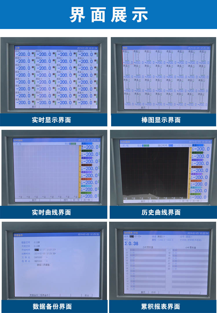 無紙記錄儀是將采集的數據/運算數據以時間為基軸記錄在儀器內部的存儲系統中,無消耗任何常用的記錄設施,如:紙張、筆墨。記錄在儀器內部的存儲數據,通過運算、模擬后顯示在液晶屏。常用顯示用液晶屏比較廣泛。在液晶屏屏幕上,可以顯示數字顯示、棒圖顯示、曲線顯示、報警列表等。無紙記錄儀采集的數據,常用的有:溫度、壓力、流量、液位、電壓、電流、濕度、頻率、振動、轉速等。