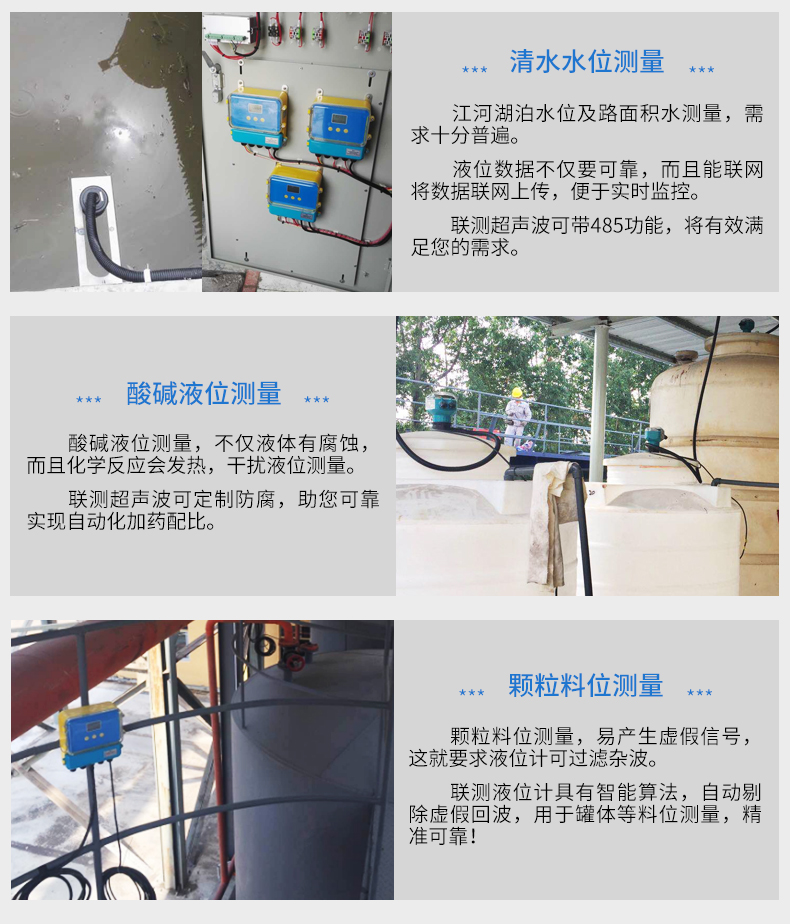 在測量中超聲波脈沖由傳感器(換能器)發出,聲波經液體表面反射后被同一傳感器接收或超聲波接收器,通過壓電晶體或磁致伸縮器件轉換成電信號,并由聲波的發射和接收之間的時間來計算傳感器到被測液體表面的距離。 由于采用非接觸的測量,被測介質幾乎不受限制,可廣泛用于各種液體和固體物料高度的測量。