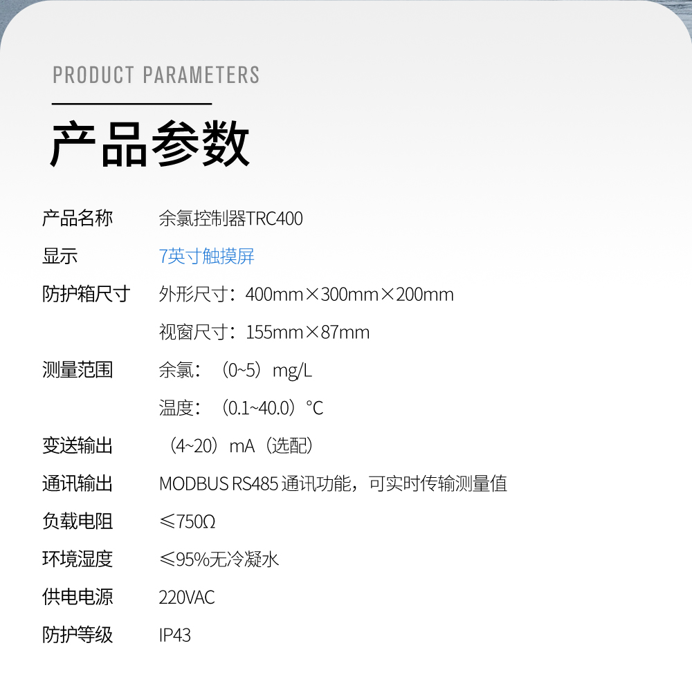本余氯儀內(nèi)置瑞士傳感器,具有測量精度高、響應(yīng)時間快、維護(hù) 成本低等特點。余氯儀輸出一路(4~20)mA 標(biāo)準(zhǔn)信號和一路 RS485 信號,可連接各種調(diào)節(jié)器,如根據(jù)客戶需求可連接兩位調(diào)節(jié)器、時間 比例調(diào)節(jié)器、非線性調(diào)節(jié)器和經(jīng)典的 PID 調(diào)節(jié)器等,組合成各類余氯 控制系統(tǒng)。